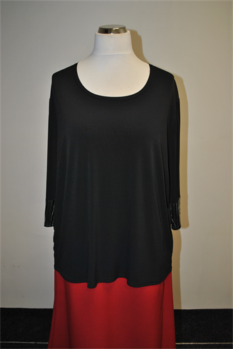 Slavnostní, jednobarevná halenka má 3/4 rukávy, které jsou zakončeny šifónovou vsadkou. Halenka má kulatý výstřih a jr ušita z pohodlného úpletu. Délka je 70 cm.